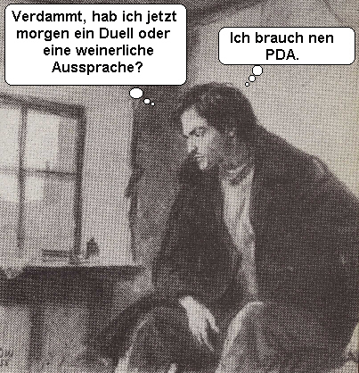 Dennoch frage ich mich, ob er nicht selbst manchmal über seine genialen psychologischen Einsichten und kruden Figurenbeziehungen lachen mußte. Ich tu es jedenfalls (ab und zu), und deswegen an dieser Stelle ein wenig "schimpfliche Verunglimpfung".